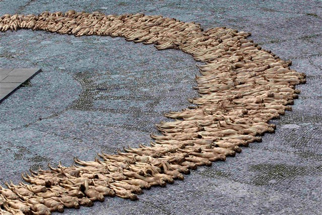 «Cerca de 1700 pessoas despiram-se para o artista norte-americano Spencer Tunick no centro da cidade de Munique, na Alemanha.