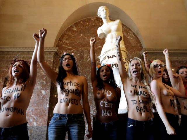 «O grupo feminino ucraniano "atacou" [ontem] o Museu do Louvre, em Paris, França. O local escolhido pelas ativistas foi junto à estátua da Vénus de Milo. O protesto prende-se com as acusações de "indecência" contra uma mulher alegadamente violada por dois polícias tunisinos.»