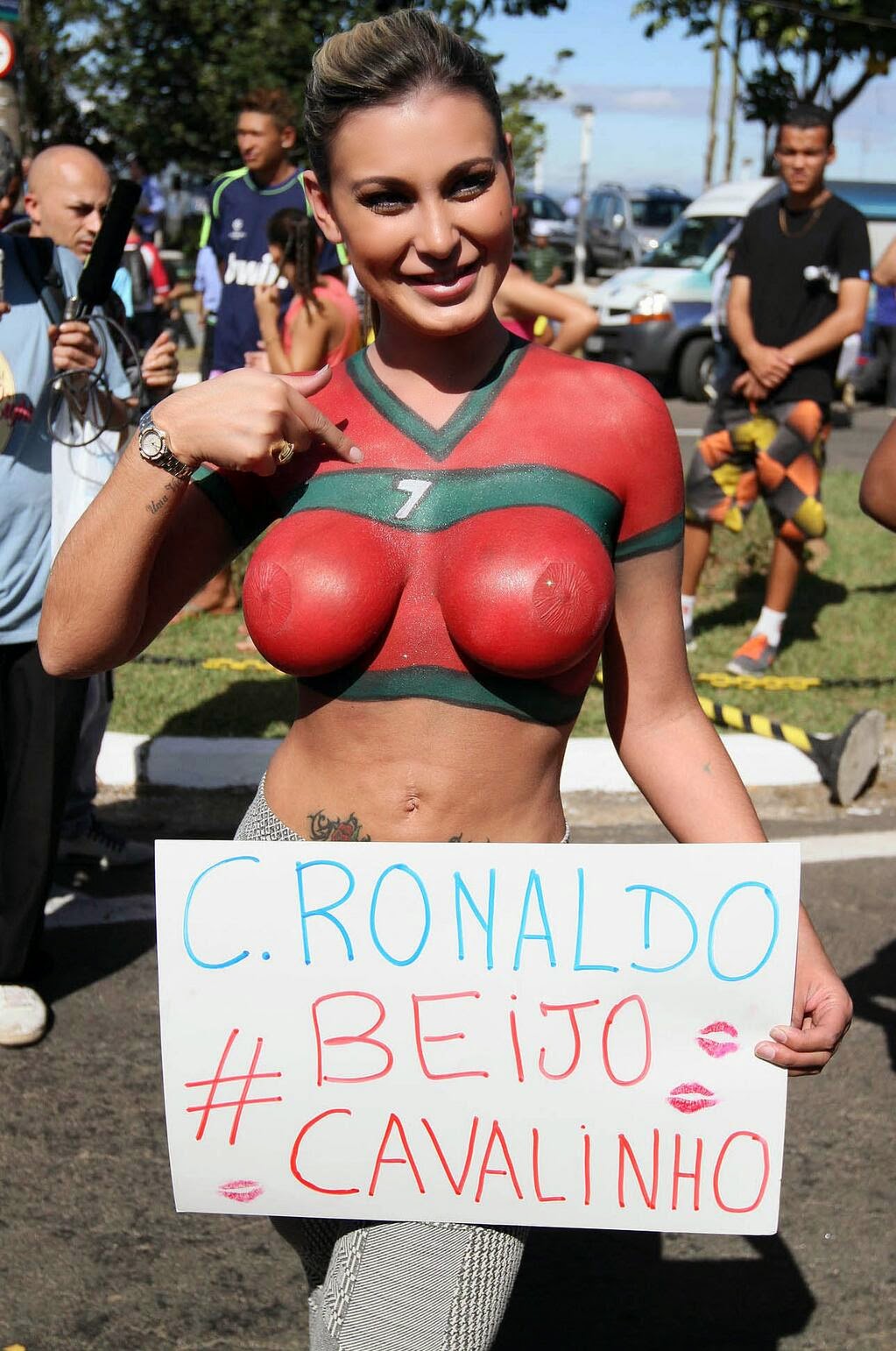 «Entre os muitos adeptos que estiveram no Hotel Royal Palm, em Campinas, para receber a seleção portuguesa, Andressa Urach foi a que mais se destacou. Com ela trazia um cartaz dedicando uma frase para Cristiano Ronaldo e a enigmática palavra "Cavalinho".